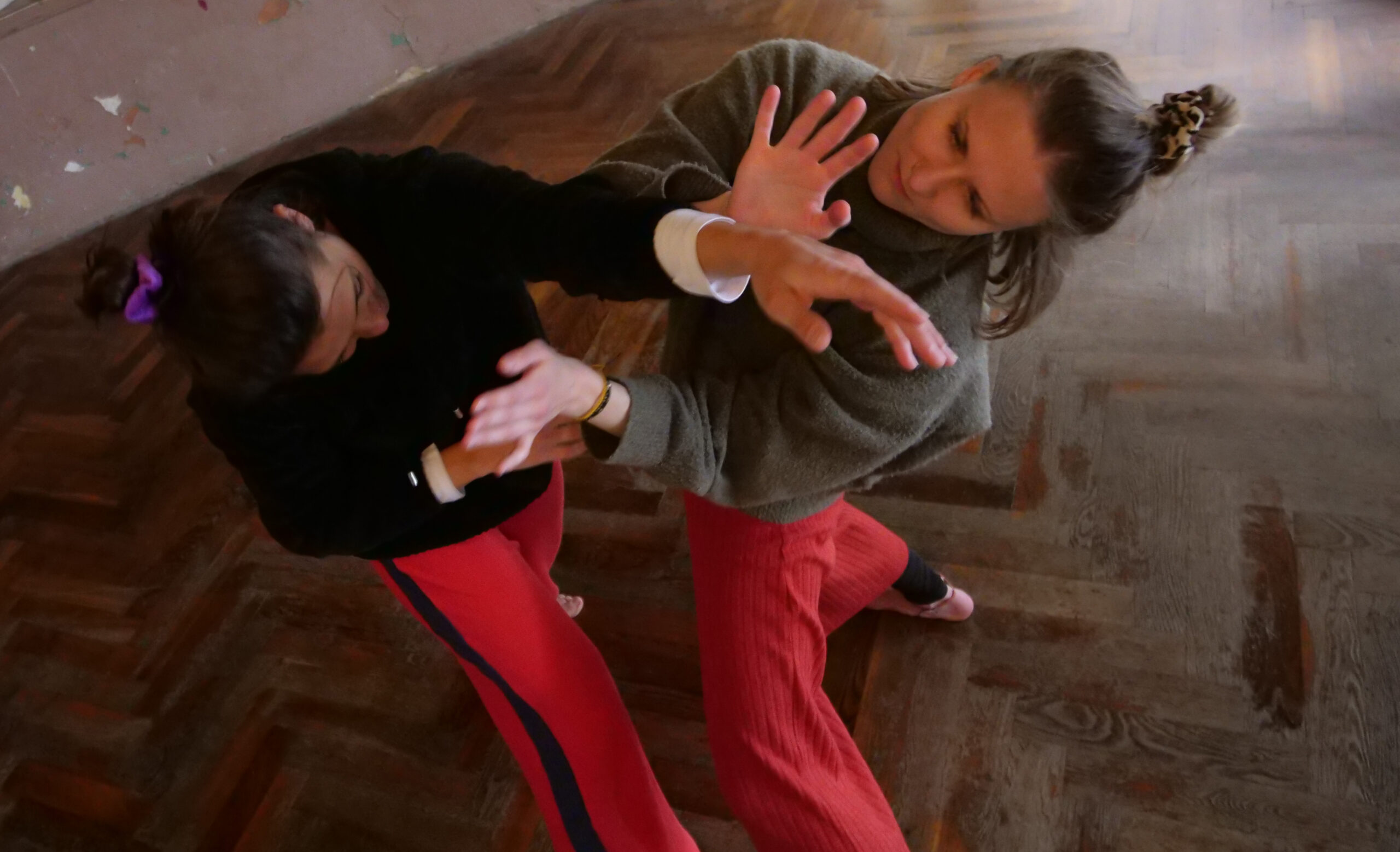 Open Play: We keep the spirit of Open Circle Play, but let go of the circle and give ourselves a more wide palette of intentions. Maybe i want to direct my partner through a specific trajectory, lift them or find a ride on them. Maybe i want to organize our bodies as a two-body system through interesting dynamic compositions. Maybe i return to the physical listening of cloud arms, but expand it to cloud body and add elements of movement into and out of the floor or spiralling patterns through space. From here it opens up into many directions, following the curiosities of those exploring with each other. While learning specific movement vocabulary, partnering moves, and lifts is part of the training, the work is more about principles and playful adaptive awareness than about replicating and specific moves.