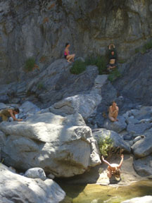In each trip, we hike in, bringing everything that we need for the time with us. We pack in our food and share such collective tasks as food preparation and clean-up and camp set-up/breakdown. We practice low impact camping, paying attention to our physical relationship to the world around us. Hiking to base camp will be moderately strenuous, and from there as strenuous or easy as you want to make it for day trips. The project is organized in the spirit of laboratory, where each brings what they have to share, some with more wilderness experience, and others with more dance experience. All should have some hiking experience and some experience working creatively with their body. Feel free to call or write with questions.