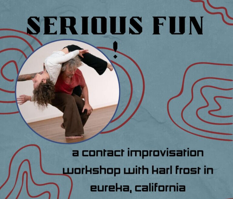 Bio: Karl Frost began his movement studies with the Hawaiian martial art of Lua in 1982. He began to study dance (contemporary dance and contact improvisation) in the SF Bay Area in the late 1980s and has been teaching, practicing, and performing works based in or inspired by contact improvisation since then. His work, influenced by studies in contemporary release technique, Alexander technique, and martial arts as well as paratheatrical work and somatic psychology, has been showcased internationally. He is recognized for his articulate teaching work, dynamic and sensitive technical work, and for the psychologically and physically edge-pushing nature of the performances he directs. His company, Body Research, is devoted to exploring how we live, think, and feel through the body. Much of the work is highly audience-interactive, with roots in somatic psychology and in Grotowskian paratheatrical exploration. Some of his projects have included the Dancing Wilderness Project, the participatory performance works AXOLOTL, PROXIMITY, and BODY OF KNOWLEDGE, and Contact Camp at Burning Man. He has a BA in Physics (UC Berkeley), and MFA in Dramatic Arts and Choreography (UC Davis), and a PhD in Ecology (UC Davis) and currently works as a research scientist at the Max Planck Institute for Evolutionary Anthropology in Leipzig, Germany, Department of Human Behavior, Ecology, and Culture.